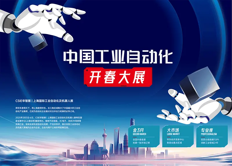 2025 CSIE华智展 | 上海国际工业自动化及机器人展全新升级,定档2025年3月3-6日,举办2025年全国第一场自动化专业展,为参展企业抢占开年第一批市场订单,提供黄金展示平台。